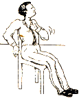 DEEP BREATHING (General relaxation) : Sit in a chair with the aims relaxed Inhale slowly as you 'Sit tall', tightening your muscles and pulling the shoulders back. Exhale completely as you slump forward relaxing the whole body. |