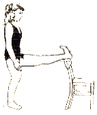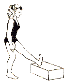 PEDALING ON THE SPOT {stimulates circulation, tones carves and thighs) : Keep the legs moving continuously in a pedaling motion by roiling the feet up high on the toes. Relax the arms and swing them in the opposite direction to the feet. |