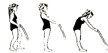 TRUNK TWIST (To improve hip flexibility): With the arms relaxed and the feet apart, slowly twist around each side and back, following the leading hand with the eyes Avoid violent twisting. |