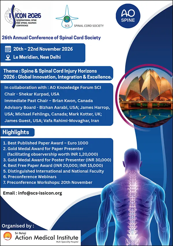 The main aims and objects for which the society is established are the advancement of management, training and research in spinal injuries.