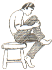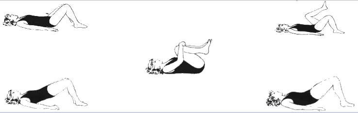 KNEE TO NOSE (For lower back and abdominal :it promotes relaxation): Seated, pull one knee up towards the chest, then try to reach the knee with the head. Movement should be slow and smooth. |